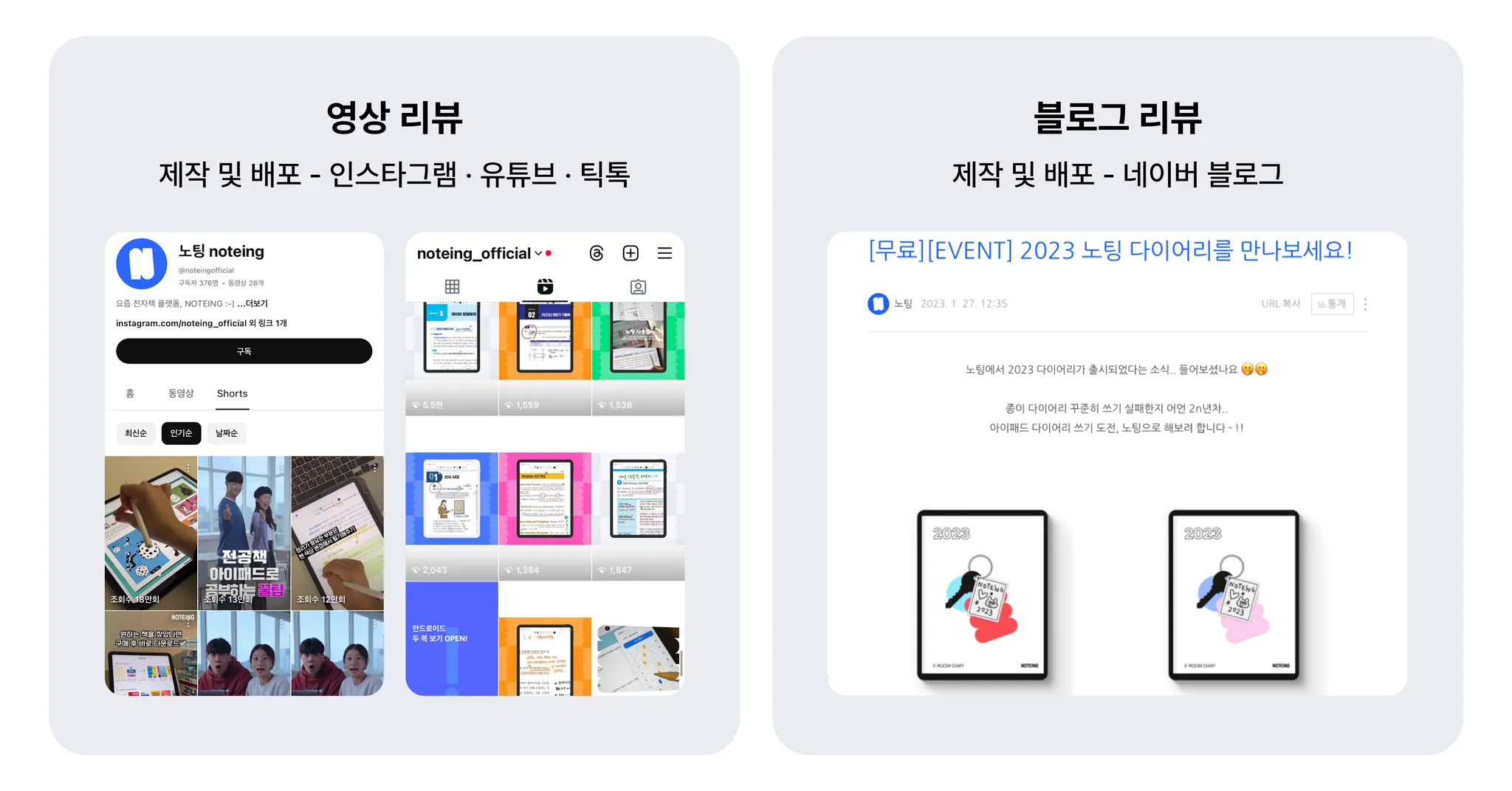 리뷰 릴스 영상 제작 및 배포 → 인스타그램, 유튜브 쇼츠, 틱톡 채널 업로드 예정