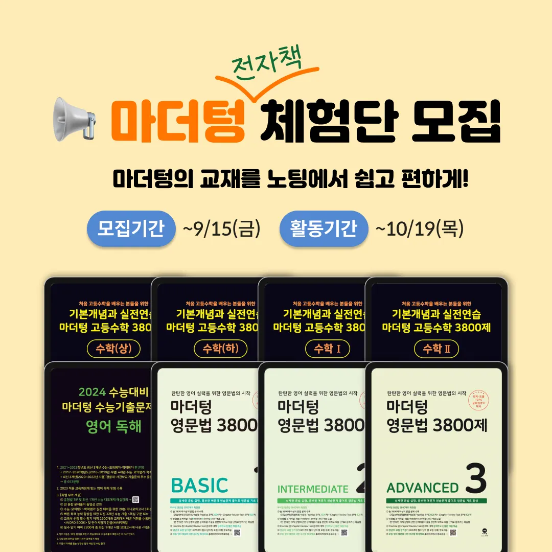 마더텅 교재를 pdf로 만나볼 수 있는 전자책(E-Book)이 10월 말 출시될 예정입니다.